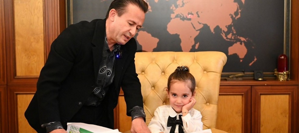 Dr. Şadi Yazıcı’nın makamına hazırladığı projeleri ile giren 4 yaşındaki Ayşe Eda Ödev, büyüdüğünde belediye başkanı olmak istediğini söyledi. Başkan Yazıcı ile projeler üzerinde hasbihal eden Ödev, çikolata şelalesi, çocuk hastanesi gibi fikirlerini sundu. Sunumdan sonra Yazıcı’nın makamına oturan Ödev, hediyesini burada açtı. Aşçı kıyafetleri giyen ve büyüdüklerinde aşçı olmak istediklerini söyleyen Buse Sönmez (3) ve İpek Azra Korkut (4) ise Başkan Yazıcı’ya yaptıkları pastayı ikram etti. Eğlenceli vakit geçirdiklerini söyleyen çocuklar, teşekkürlerini iletip makamdan ayrıldı.