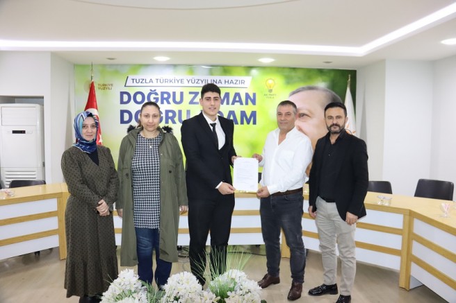AK Parti Tuzla’da 31 Mart 2024 Mahalli İdareler Seçimleri İçin En Genç Başvuru Yapan Ali Görkem Salgar Oldu. Annesi, Babası ve Arkadaşlarının Destekleriyle Geldiği İlçe Başkanlığından Resmi Başvurusunu Tamamlayan En Genç Meclis Üyesi Aday Adayı Ali Görkem Salgar Yaptığı Açıklamalarda Cumhurbaşkanımız Sayın Recep Tayyip Erdoğan'ın "Siyasette Gençlere Yer Vermek Ustalığın Şiarındandır" Anlayışıyla AK Parti'imizin Tuzla İlçe Başkanlığına Başvurumuzu Tamamladık İfadelerini Kullandı.