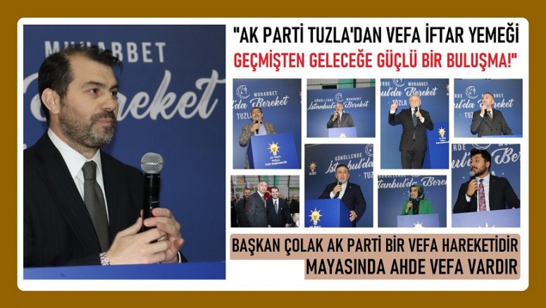 İftar programının açılış konuşmasını yapan AK Parti Tuzla İlçe Başkanı Şeref Çolak, AK Parti’nin bir “vefa hareketi” olduğunu vurguladı. Çolak, "AK Parti’nin mayasında ahde vefa vardır. Teşkilatımızın her başarısı, yalnızca birkaç kişinin değil, tüm mensuplarımızın emeğiyle elde edilmiştir. Bugün burada geçmişten gelen değerli yol arkadaşlarımızla birlikte olmaktan mutluluk duyuyoruz. Geçmişten aldığımız güçle, geleceğe birlikte ilerleyeceğiz" dedi.