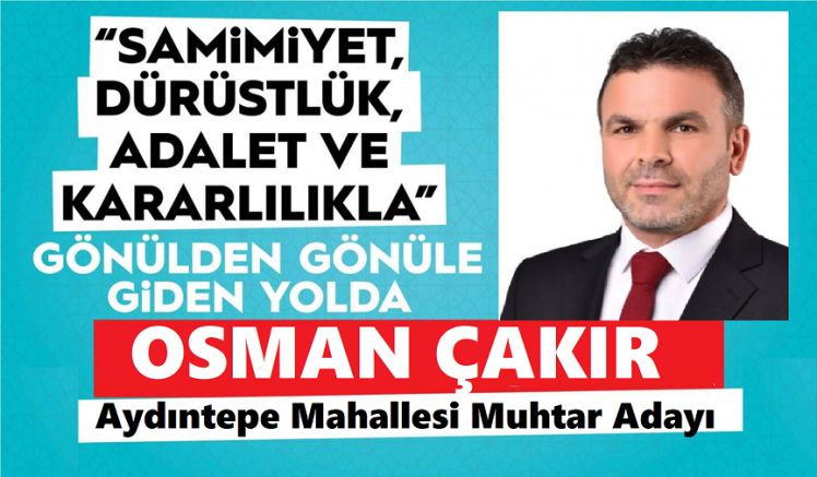 Çocukluğu ve Gençliğini Aydıntepe Mahallesinde Geçiren Osman Çakır Yıllardır Mahallede İkamet Ederek Güzel Anılar Biriktirdiği Tuzla'mızın Güzide Mahallesi Olan Aydıntepe Mahallesi İçin Yaptığı İstişareler Sonucunda ve Mahalle Halkının da Teveccühü İle Aydıntepe Mahallesine Güzel Hizmetler Yapmak İçin Muhtar Adayı Olmaya Karar Verdiğini Açıkladı.