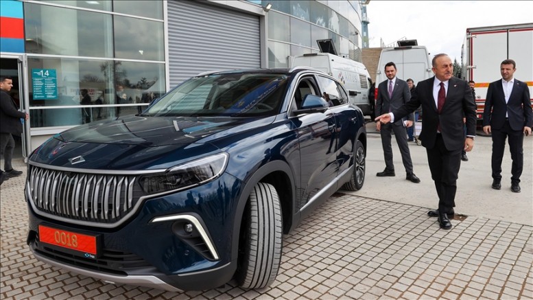 Vatandaşlara, Togg'a ilişkin fikirlerini soran Çavuşoğlu, "Bu bizim bakanlığın arabası, bize mavi Gemlik göndermişler, bu da güzel renk, kırmızı da güzel." ifadelerini kullandı.