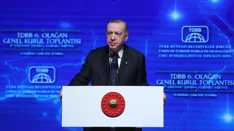 Cumhurbaşkanı Recep Tayyip Erdoğan, Haliç Kongre Merkezi'nde düzenlenen Türk Dünyası Belediyeler Birliği (TDBB) 6. Olağan Genel Kurulu'ndaki konuşmasında, kuruluşundan bugüne birlik çatısı altında hizmet verenlere teşekkür etti.