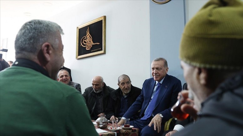 Erdoğan, törenin ardından cami çevresinde kendisine sevgi gösterisinde bulunan vatandaşlarla çay içerek sohbet etti. Bu sırada Cumhurbaşkanlığı ekiplerince çocuklara oyuncak dağıtıldı