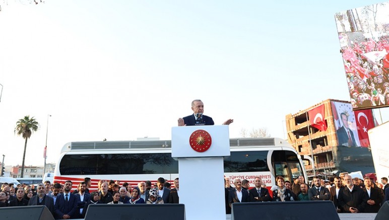 Acil ihtiyaçları karşılamak için çadırdan konteynere, prefabrik yapılara kadar tüm barınma imkanlarını seferber ettiklerini anımsatan Erdoğan, şöyle konuştu: