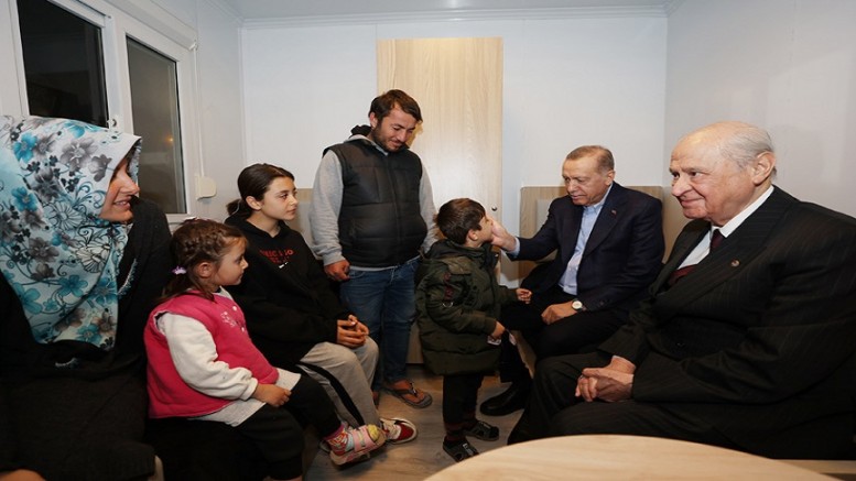 Cumhurbaşkanı Recep Tayyip Erdoğan ve MHP Genel Başkanı Devlet Bahçeli, Katar'ın gönderdiği konteynerlerden kurulan Katar-Türkiye Kardeşlik Konteyner Kenti'nde incelemelerde bulundu.