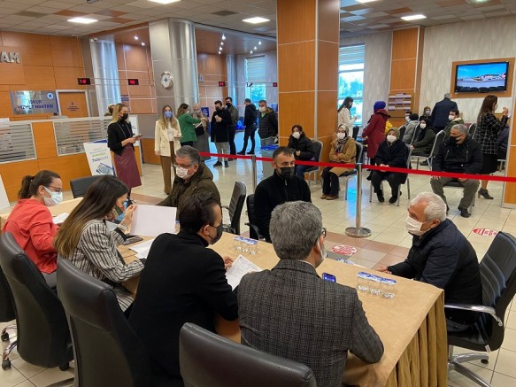 Tuzla Belediye Başkanı Dr. Şadi Yazıcı, her perşembe günü yüz yüze ‘Halk Günü Buluşmaları’ ile Tuzlalı vatandaşlarla bir araya gelmeye devam ediyor. Koronavirüs salgını nedeniyle alınan tedbirlere uyularak gerçekleştirilen görüşmelerde Başkan Yazıcı, vatandaşlar ile tek tek görüşüp talep ve önerini dinledi. Not aldığı talep ve önerilerin çözümleri için ilgili müdürlüklere talimat veren Başkan Yazıcı, iş aramak için belediyeye gelenleri ise Tuzla Belediyesi Kariyer ve İstihdam Fuarı’na yönlendirdi.