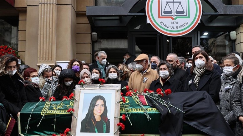 "Yapamadıklarımız, olmayanlar dolayısıyla bugün bu noktaya geldik. Bu cinayet bu nedenle ötekilerden farklı. Bu ölüm bizi başka ölümlerden, 29 yaşındaki bir kardeşimizin ölümü, genç ölümlerinden farklı olarak daha çok üzüyorsa almamız gereken derslerle ilgili bütün bunlar. Toplumsal cinsiyet eşitliğini sağlayana kadar bu ülkenin baroları olarak sonuna kadar mücadeleye devam edeceğiz. Kadın cinayetlerinin önlenmesi adına hukukçular, avukatlar olarak ne gerekiyorsa yapmaya devam edeceğiz. Ateş düştüğü yeri yakıyor. Ama bugün ateş İstanbul Barosuna da düştü."