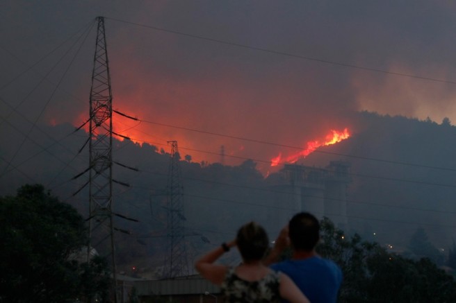 Türkevleri Mahallesi'ndeki yangın sarp ve kayalık arazide, zaman zaman da yerleşim yeri yakınlarında etkisini sürdürüyor.