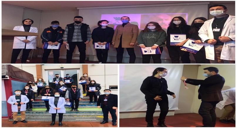 Yarışma kapsamında dereceye giren öğrencilerimize okul müdürümüz sayın Emre YAVUZ eşliğinde madalya ve ödüllerini takdim ederek sınav haftası öncesi morallerini üst seviyeye çıkartırken yarışmaya katılan bütün öğrencilere ise katılım belgelerini takdim ettik.
