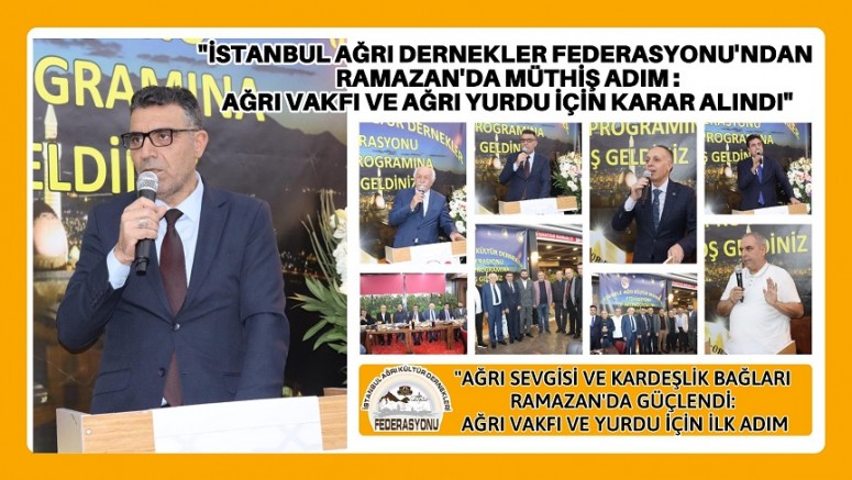İstanbul – İstanbul Ağrı Dernekler Federasyonu, Ramazan ayı kapsamında önemli bir adım attı. Federasyonun Genel Başkanı Mehmet Uşen’in ev sahipliğinde düzenlenen geleneksel iftar programında, Ağrı Vakfı ve Ağrı Yurdu'nun kurulması için karar alındı. Birlik ve beraberlik mesajlarının verildiği iftarda, katılımcılar, ellerini semaya kaldırarak bu önemli projelere desteklerini sundular.