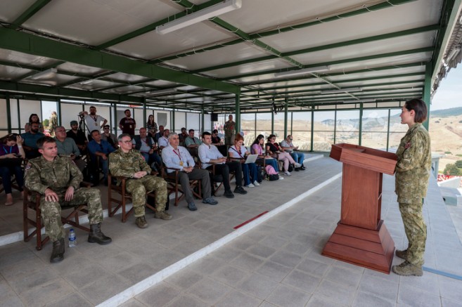 Milli Savunma Bakanlığı Basın ve Halkla İlişkiler Tanıtım Subayı Deniz Yüzbaşı Burcu Naliç Yokuva tarafından EFES 2022 Birleşik Müşterek Fiili Atışlı Arazi Tatbikatı'nın icra edildiği Doğanbey Tatbikat Bölgesi'nde bilgilendirme toplantısı yapıldı.