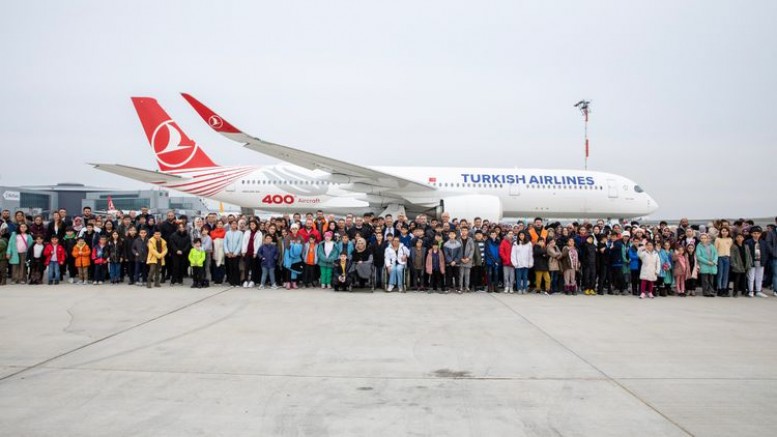 Bir süre önce Avrupalı uçak üreticisi Airbus'tan teslim alınan 329 koltuk kapasiteli A350-900 tipi uçak, THY Teknik AŞ'nin Atatürk Havalimanı'ndaki hangarında özel olarak boyanarak şirketin filosuna alındı. "Tek Yürek" adı verilen filodaki 400'üncü uçağın ilk seferi, depremzede çocuklar ve aileleri için organize edildi.