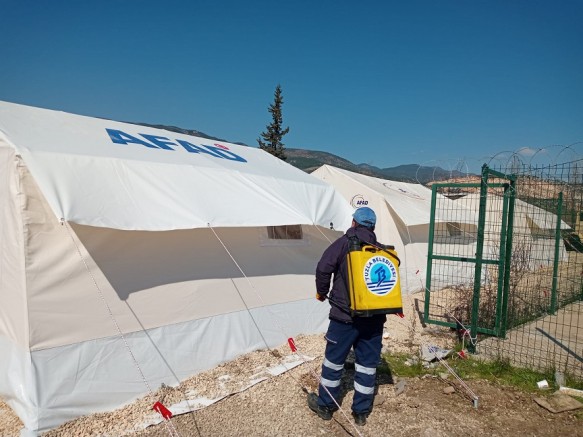 Tuzla Belediyesi ekipleri de depremin yaşandığı ilk andan itibaren Hatay’da çalışmalarını aralıksız sürdürüyor. Tuzla Belediyesi ekipleri, AFAD’ın kurduğu çadır kentte yine AFAD koordinasyonunda dezenfekte ve temizlik çalışmalarını sürdürüyor. Ekipler, çadırların etrafını özel makineler ile tek tek dezenfekte ediyor.