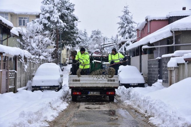 İstanbul’da birkaç gündür etkili olan kar yağışı nedeniyle hayatın olumsuz etkilenmemesi için Tuzla Belediyesi ekipleri gece gündüz çalışmalarını sürdürüyor. Kar küreme araçları ve tuzlama araçları Tuzla’nın 17 mahallesinde bulunan ara sokakları temizlerken, elle küreme ekipleri de kaldırımları temizleyerek buzlanmanın önüne geçiyor. Yapılan çalışmalar neticesinde olumsuz bir durum yaşanmazken, kar yağışı bitene kadar çalışmaların aralıksız süreceği belirtildi.