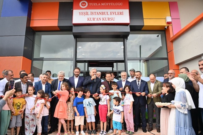Tuzla’nın Aydıntepe Mahallesi’nde Yeşil İstanbul Evleri’nin altına 4-6 yaş arası çocukların gidebileceği Kur’an Kursu açıldı. 750 metrekarelik alan içerisine açılan Kur’an Kursu’nun açılış törenine Tuzla Kaymakamı Ali Akça, Marmara Üniversitesi İlahiyat Fakültesi Öğretim Üyesi Dr. Enver Osman Kaan, Tuzla Belediye Başkanı Dr. Şadi Yazıcı ile birlikte İstanbul İl Müftülüğü Müftü Yardımcıları, Tuzla ve Pendik Müftüsü, siyasi parti temsilcileri, kamu kurum ve kuruluşlarının temsilcileri ile birlikte çok sayıda vatandaş katıldı. Protokol üyeleri, kurdele kesiminin ardından Kur’an Kursu’nu gezdiler.