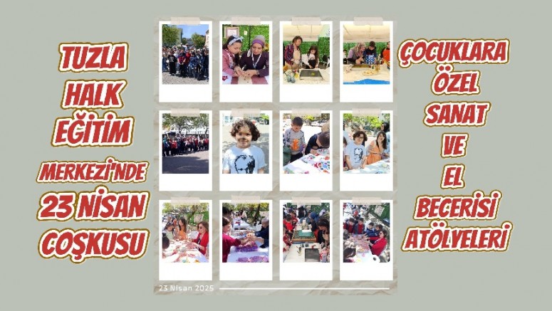 Tuzla Halk Eğitim Merkezi, 23 Nisan Ulusal Egemenlik ve Çocuk Bayramı kapsamında çocuklara özel hazırladığı renkli atölyelerle minik misafirlerini ağırladı. 22 Nisan salı günü düzenlenen etkinliklerde çocuklar hem eğlendi hem de farklı sanat dallarını deneyimleme fırsatı buldu.24 Nisan Perşembe günü etkinliklerin devam edeceği belirtildi.