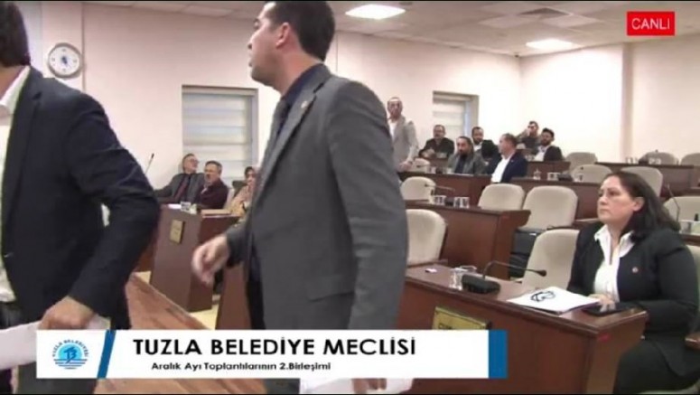 CHP Meclis Üyesi Halil Kütük Çocuk İstismarını AK Parti Yaptı Demek İçin Eline Tutuşturulan Metni Okuduğunda Kelimeler Arasına Sıkıştırılmış Suçlayıcı Cümlelerine AK Parti Tuzla Meclis Üyeleri Cevap Verince Milletin İradesine Hakaret Edercesine Toplantıyı Terk Ettiler.