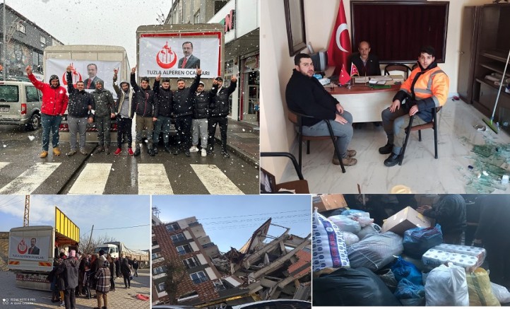 Alperen Ocakları Tuzla İlçe Başkanı Tolga Yoktan ve Ekip Arkadaşları Deprem Anından İtibaren Başlattıkları Kampanyanın Ardından 6 Tır 2 Kamyon 2 Özel Araç ile Topladıkları Malzemeleri Deprem Bölgesine Bizzat Ulaştırdılar.